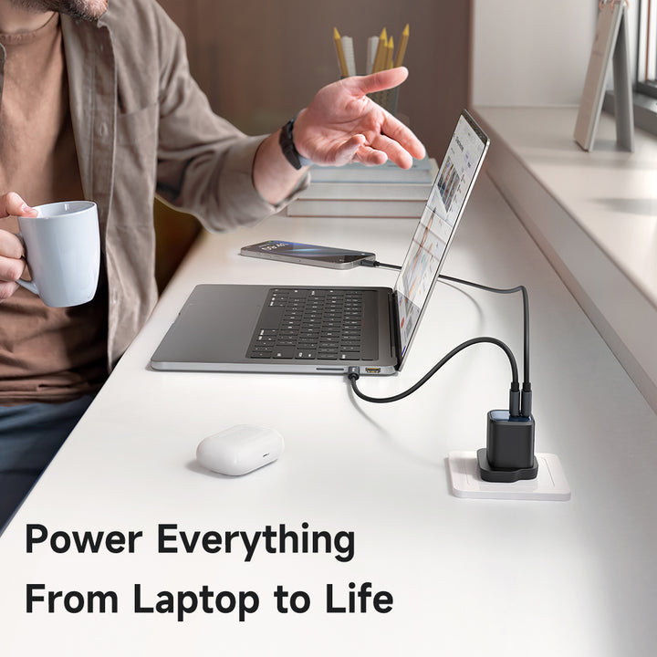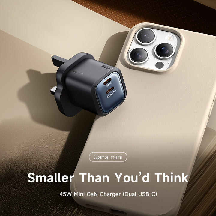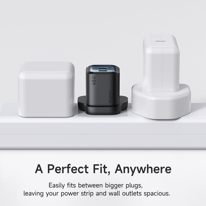 يعتمد الشاحن على تقنية GaN الجيل الخامس التي توفر طاقة عالية في حجم صغير جداً، أصغر من كثير من شواحن 20 واط العادية. يقدم قدرة تصل حتى 45 واط كحد أقصى، مثالية لشحن هواتف، تابلت، آيباد، نينتندو سويتش وحتى بعض اللابتوبات الخفيفة بسرعة وثبات.