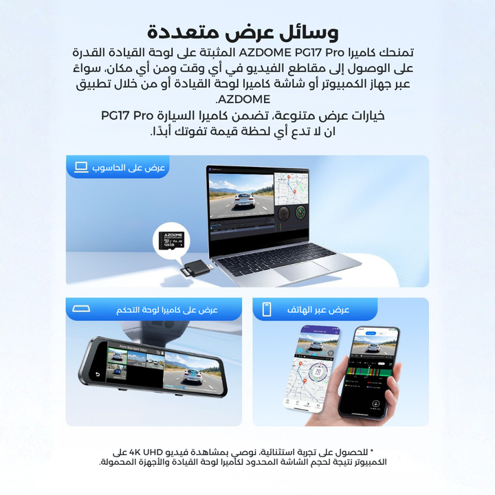 Enhance your driving experience with the Azdome PG17 Pro, the smart mirror equipped with a 4K front camera for ultra-clear vision. It provides full visibility day and night with advanced safety technologies and smart one-touch control.